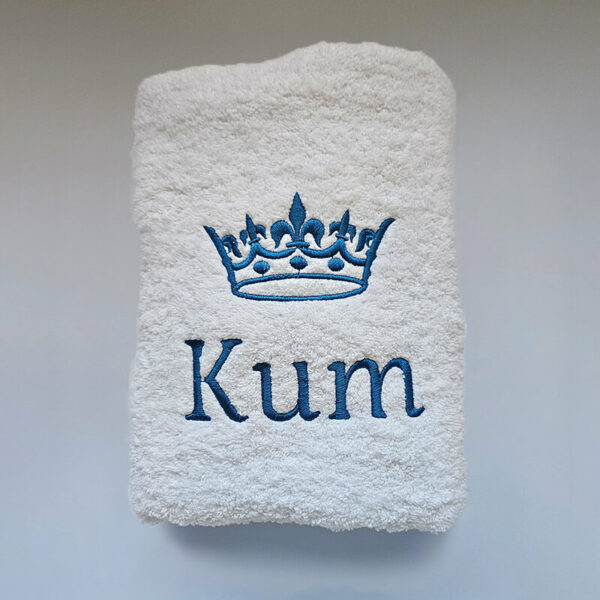 Frotirski peškir dimenzija 50×90 cm, izrađen od 100% prirodnog pamuka. Namenjen je za krštenja, venčanja i druge svečane prilike. Peškir je ukrašen elegantnim vezom, čime dobija poseban estetski i simbolički značaj.