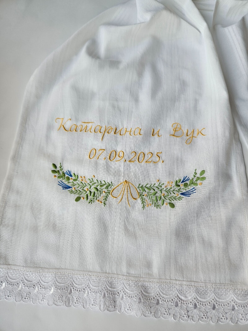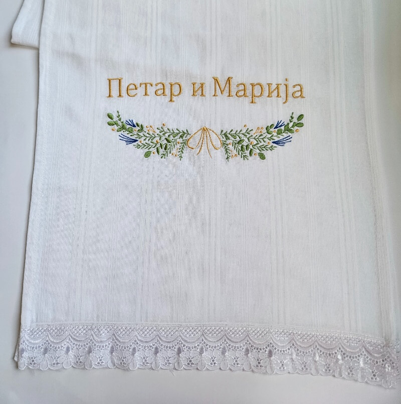 Odabir peškira sa vezom svadbenog venca ne samo da doprinosi estetskoj lepoti svadbenog dana, već i čuva i prenosi bogato kulturno nasleđe srpske tradicije.